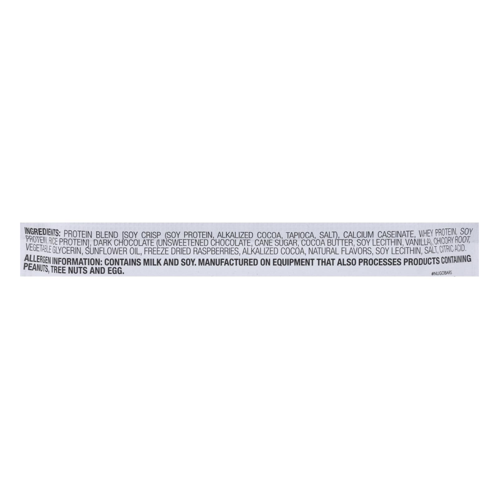 Nugo slim protein bar, raspberry truffle contains 17 g. Of protein, 7 g. Of fiber, and only 2 g. Of sugar. Each 1.59 oz. Bar is low carb and will have a negligible effect on blood sugar. This certified gluten-free bar has been gi lab tested and has been dipped in real dark chocolate for a delicious, satisfying taste.