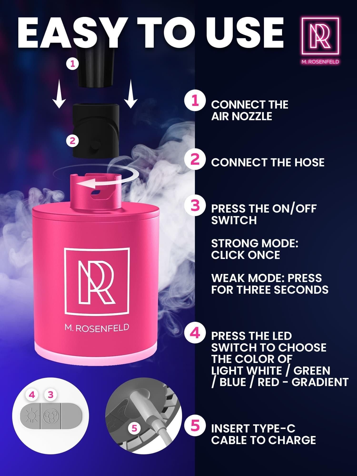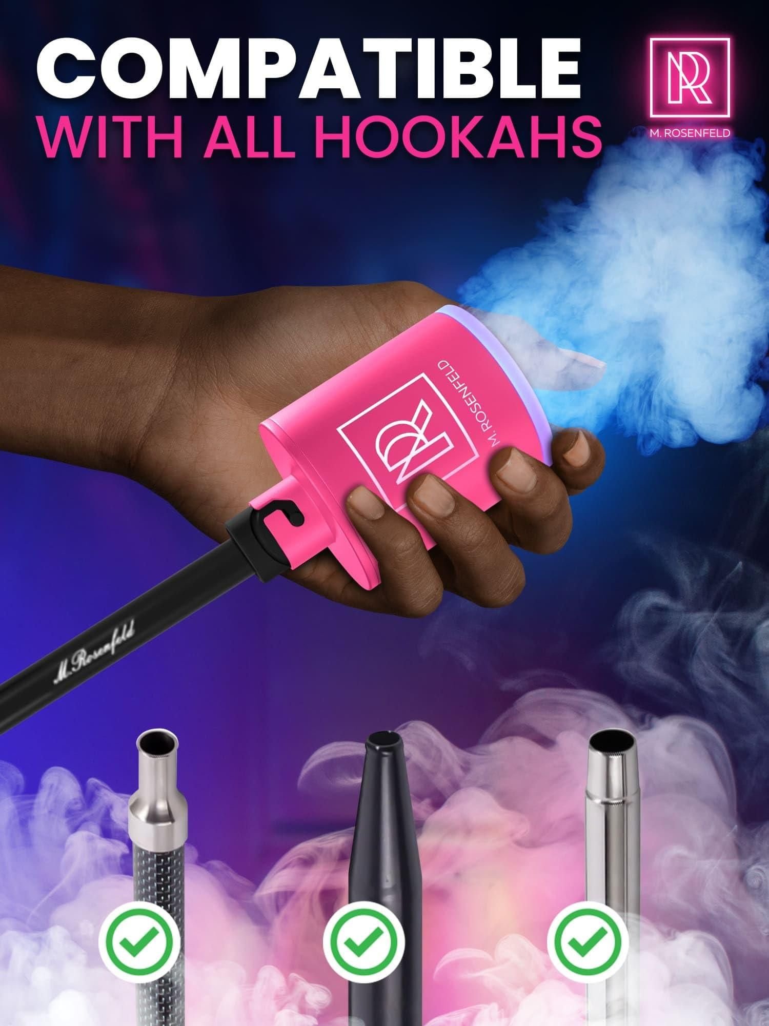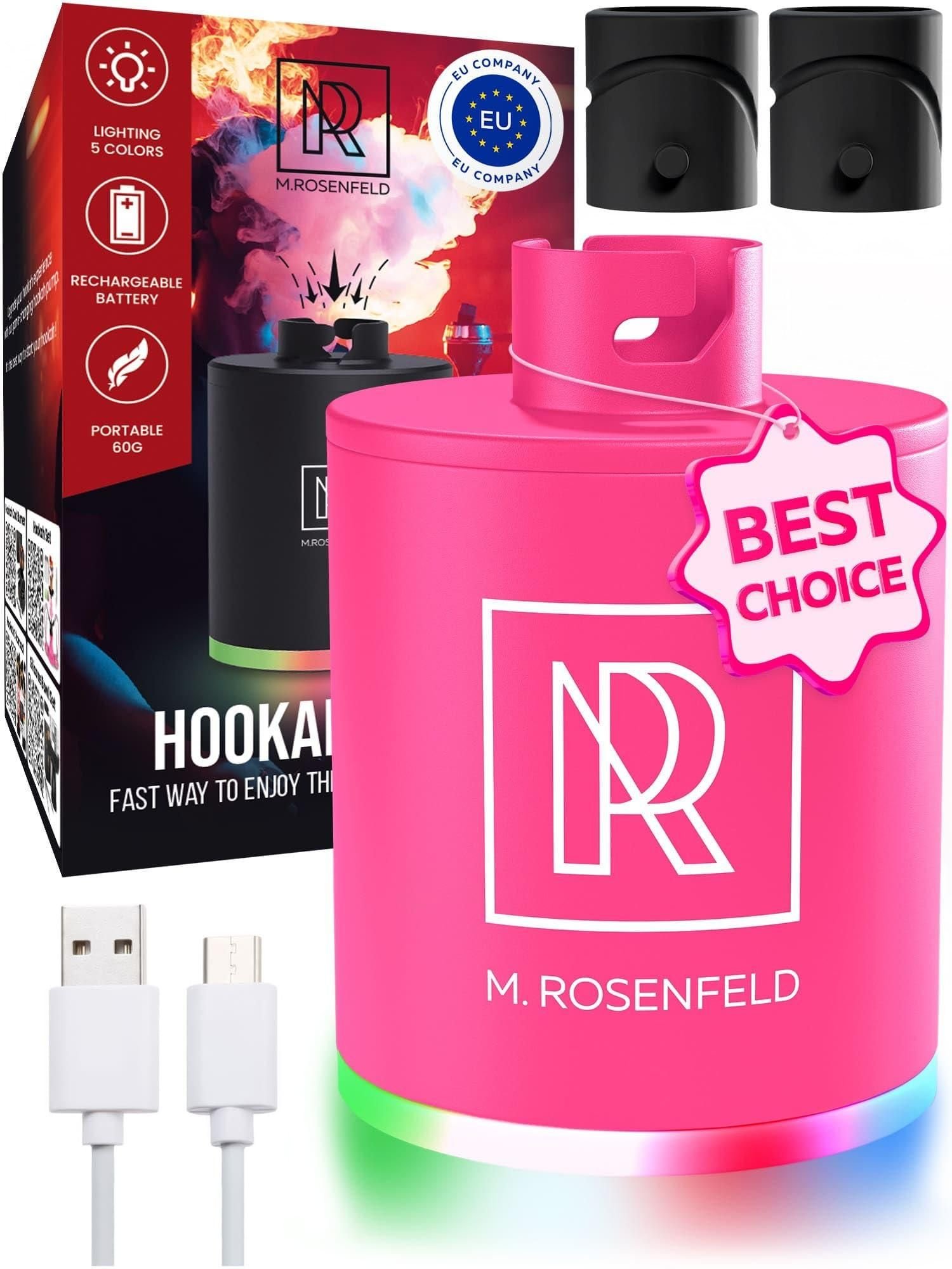 2.powerful 1300mah battery - the m. rosenfeld pink electric air pump hookah pump boasts a rechargeable 1300mah battery, delivering up to 30 hookah sessions on a single charge. with an upgraded type-c interface, you can conveniently recharge using a power bank, car adapter, or laptop.