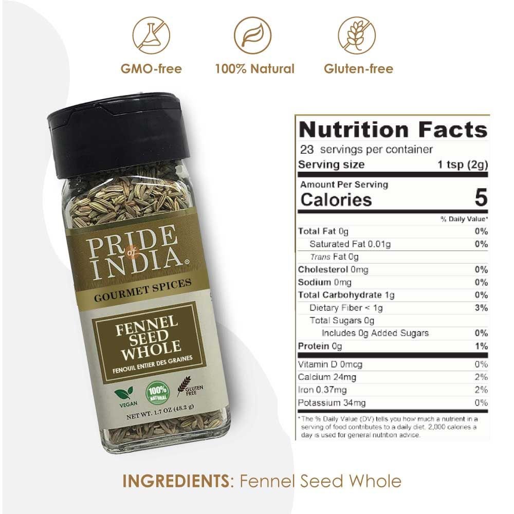 Pride of India – Fennel Seed Whole – Gourmet Spice – Fresh & Aromatic – Mouth Freshener – GMO/Gluten Free – Flavoring for bakes Pride of India – Fennel Seed Whole – Gourmet Spice – Fresh & Aromatic – Mouth Freshener – GMO/Gluten Free – Flavoring for bakes