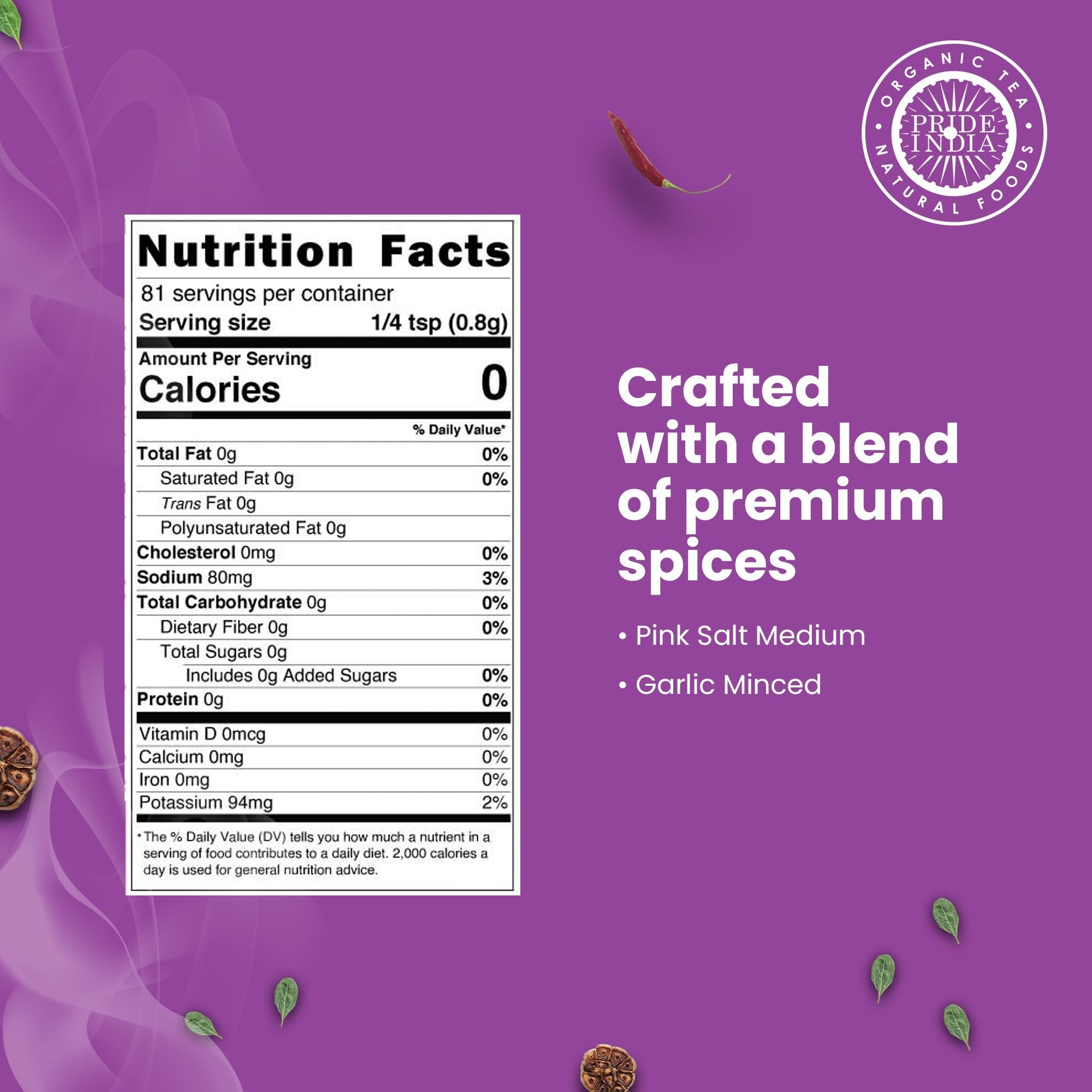 Pride of India Garlic Salt 2.3 oz (65 gm) w/ Convenient Grinder Cap Savory Pungent Tangy Taste | Himalayan Pink Salt Minced Garlic Mix | Vegan Gluten