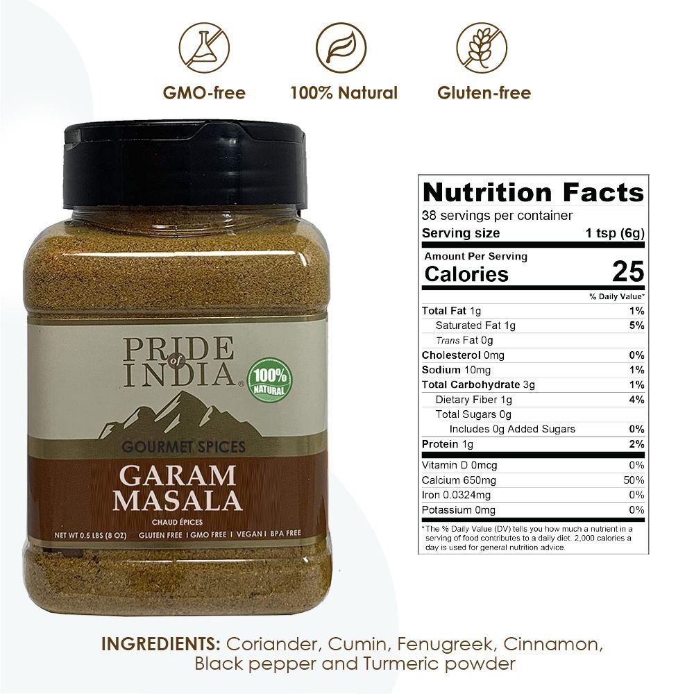 Home > Pride of India - Garam Masala Ground – Warming Spice Blend for Variety of Dishes – Flavorful Mix for Curries and Pilafs – Easy to Use - 2.2 oz.