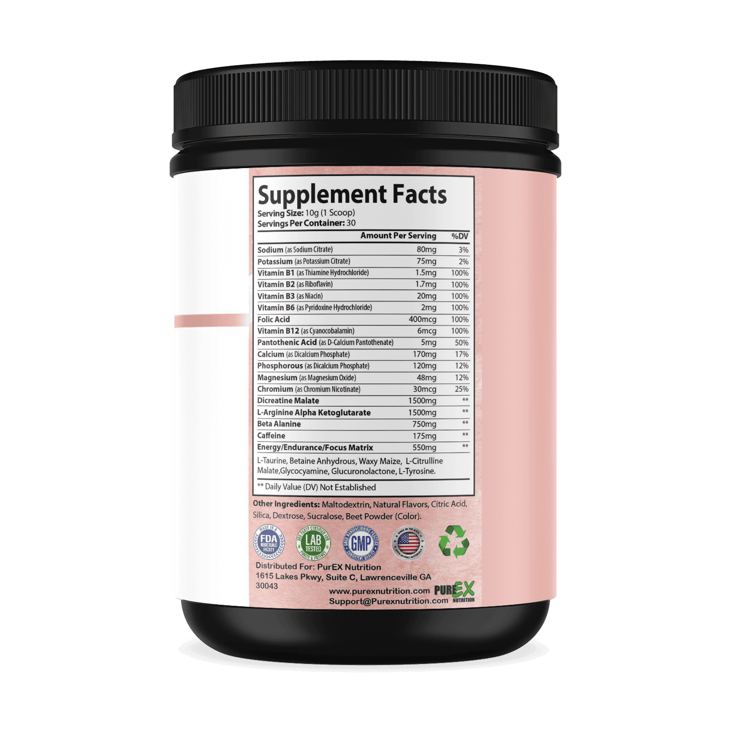 Finally, we added some important B vitamins to facilitate long term energy. We call this ‘real’ energy. These are the main nutrients that facilitate the body producing ATP. ATP is short for Adenisine Tri-Phosphate, but to keep things simple ATP is the actual usable form of energy in the body. It requires B vitamins for the body to make this process happen. So after the beta-alanine and caffeine kick in, you’ll be ripping apart calories making real energy as well!