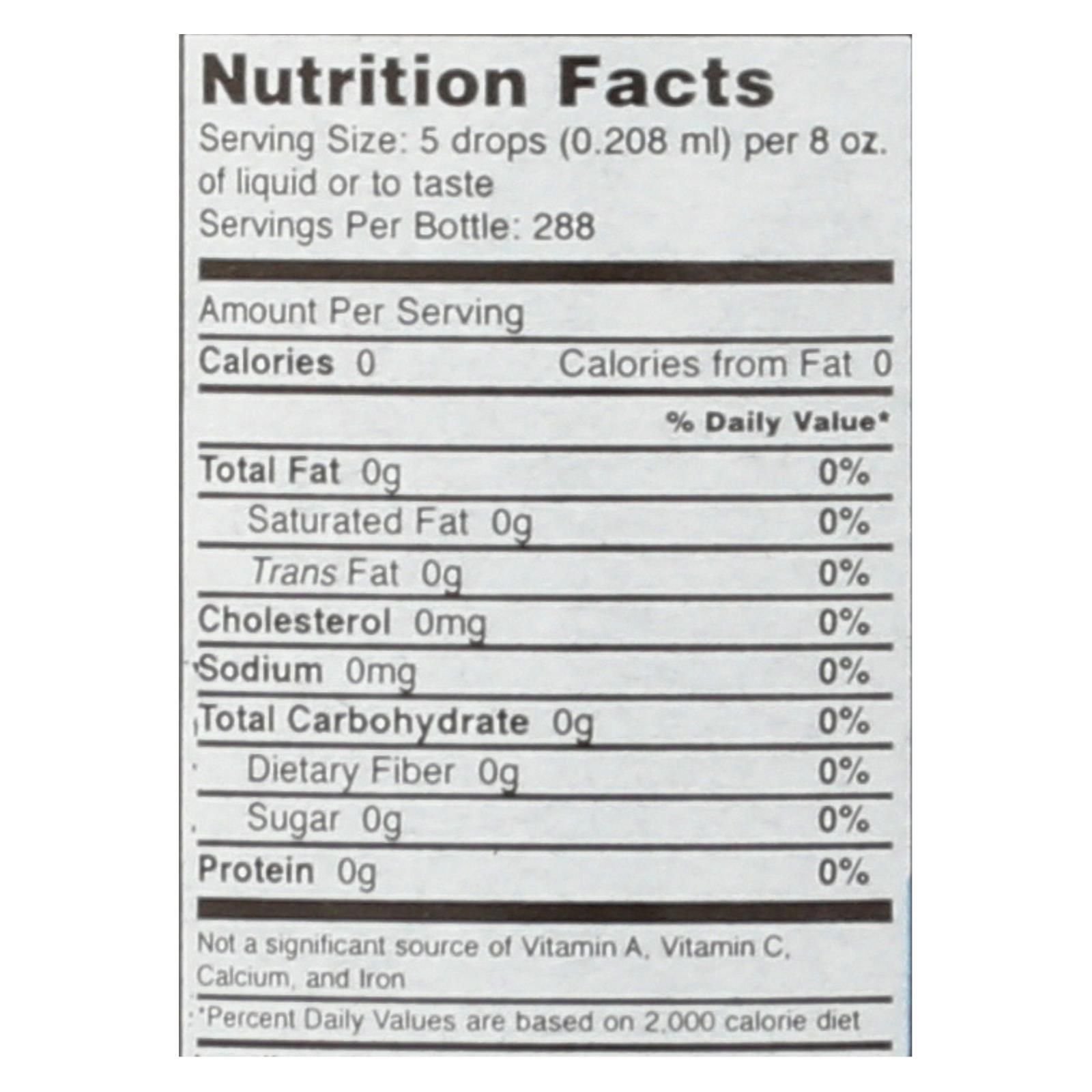 Sweet leaf sweet drops, stevia berry, is a healthier, natural and zero calories sweetener. With a serving size of only about 5 drops (or to taste) to an 8 oz. Glass, you'll get as many as 288 servings in this 2 fl. Oz. Bottle. Ingredients include organic stevia leaf extract, purified water, strawberry and berry concentrate and natural flavors.